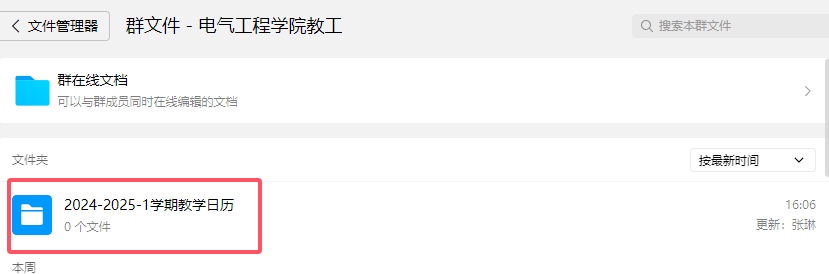(1)命名格式:教学日历(2024-2025-1)-任课教师-课程名(与教务系统一致的全称)-教学班。上传到学院教工群文件夹:教学日历2024-2025-1。
