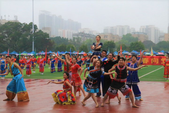 合着《幸福山歌》的节奏,舞狮、竹竿舞等民族传统节目纷纷闪亮登场。