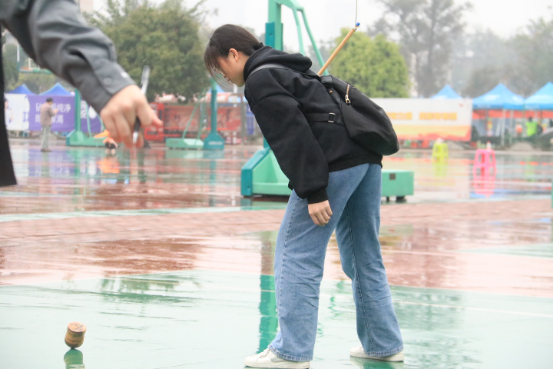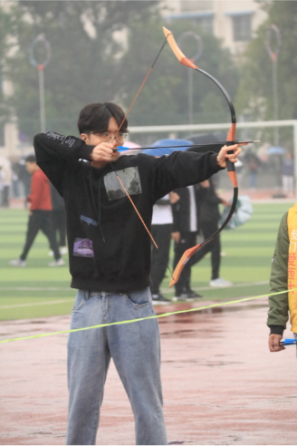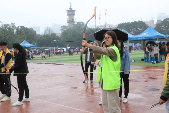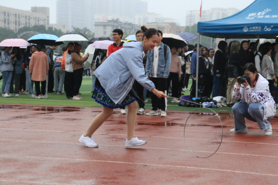 张大威同学说:“虽然下着蒙蒙细雨,但没有浇灭同学们的热情,每个项目的队伍都排得长长的,丢绣球也不例外。我排了许久的队,扔了三次,一个也没中。确实有点难度,要是再给我一次机会的话,我还是不会中的。”