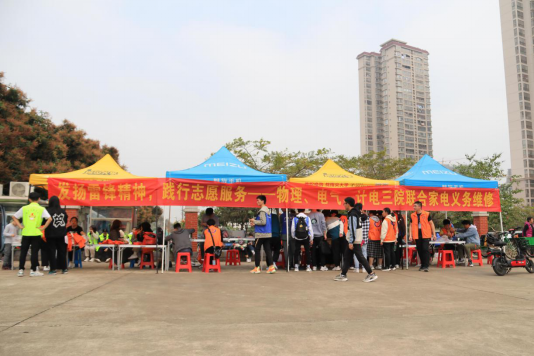 三月的春风暖暖吹过,我们又迎来了学雷锋热潮。为进一步传承和弘扬雷锋精神,践行社会主义核心价值观,传递正能量,在纪念毛泽东主席题词“向雷锋同志学习”58周年之际,kaiyun登录中国入口登录kaiyun登录中国入口登录与物理科学与工程技术学院、计算机与电子信息学院于3月13日在东高居民楼晒谷场开展了家电义务维修活动。