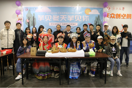 为深入贯彻落实党的十九届五中全会精神,巩固拓展脱贫攻坚成果,12月6号晚,kaiyun登录中国入口登录kaiyun登录中国入口登录和桂林银行百色分行携手,在大学生活动中心青年众创空间开展了“芋见冬天芋见你”直播助农活动,通过现场烹饪香芋美食,向全校师生推介kaiyun登录中国入口登录定点帮扶的百色市那坡县永靖村的高山香芋,为振兴乡村添砖加瓦。