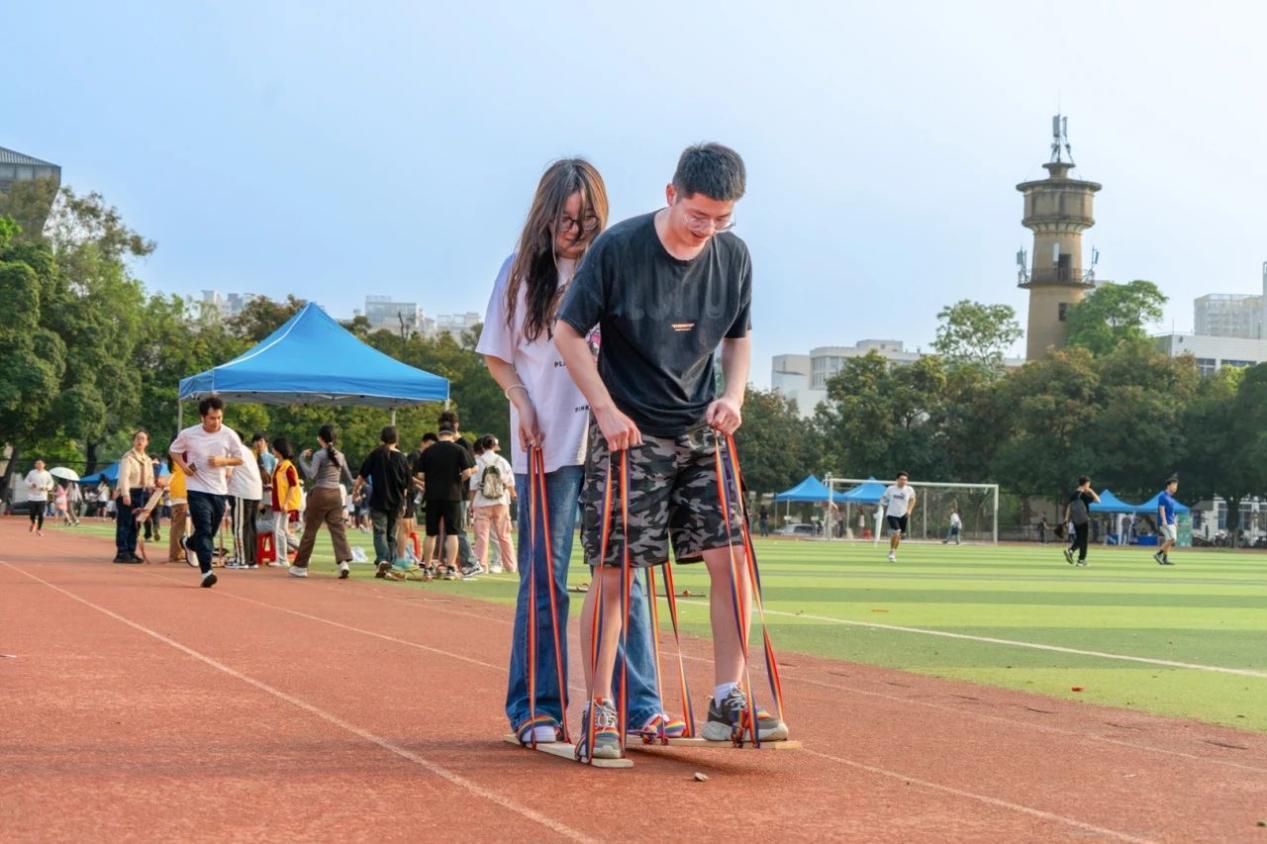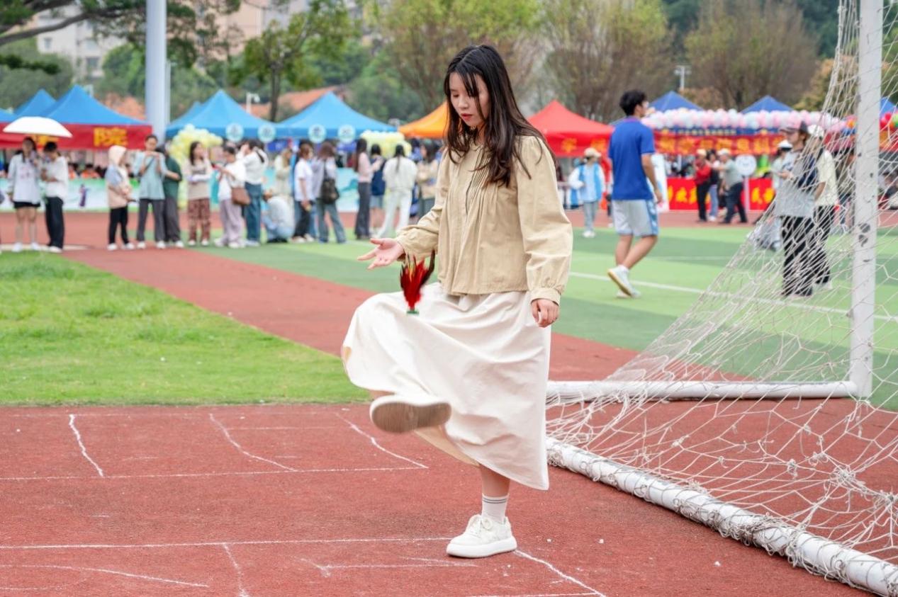 在趣味运动会的现场,kaiyun官网学子奋力拼搏,团结协作,最终收获快乐与胜利。在踢毽子比赛中,选手边维持平衡边根据毽子位置挪动步伐。