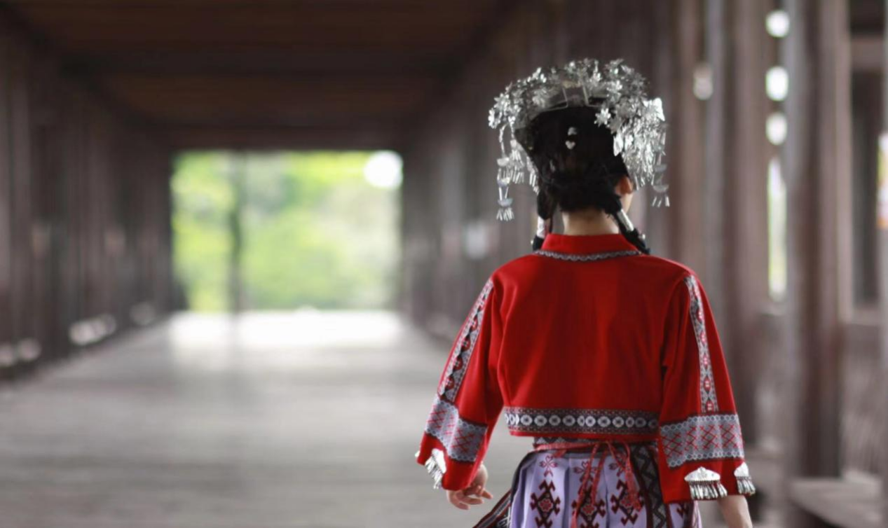 韦海梅同学体验苗族服饰
