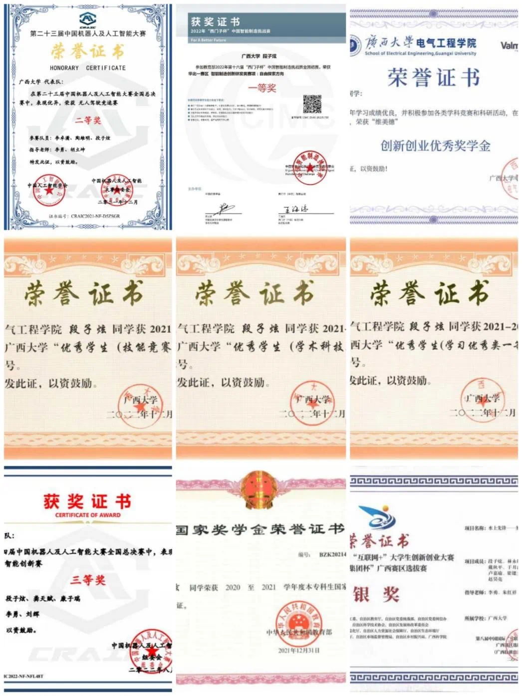 他从大一的暑假开始接触这个比赛,但因为准备不充分,结果并不理想。大二暑假,他经过一年的沉淀和准备再次参加全国大学生智能汽车竞赛。在比赛准备阶段,调参过程非常艰难,付出的时间和结果不成正比,无法达到预期的效果。在这个过程中,他受到了许多学长的帮助和鼓励,他们的支持使他能够坚持下去。在比赛过程中,他们在场地现场采集图片,团队成员加班加点标记更新数据集。最终,他们的团队获得了一等奖(第五名)的好成绩。这次经历不仅加深了段子炫对智能汽车的兴趣,也让他学会了团队合作和坚持的重要性。