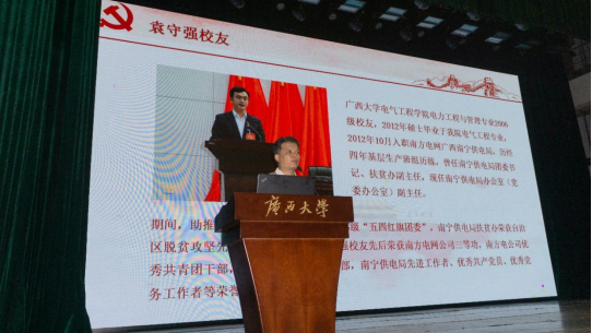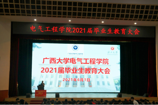 6月1日晚,kaiyun官网在大礼堂召开2021届毕业生教育大会。学院党委副书记梁志坚、校武装部军政科陈榕平、学院校友南宁供电局党委办公室副主任袁守强,以及学院党委组织员廖碧莲、团委书记石建有、自动化系副主任韦善革、毕业班辅导员蒋冬连、李娟和全体毕业生共700余人参加会议。