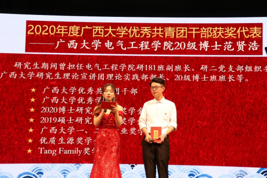 晚会现场表彰了2020年度学校团委评选出的五四红旗团委、五四红旗团支部、十佳团支部、优秀共青团员、优秀共青团干部的先进集体和优秀个人。2020年度kaiyun登录中国入口登录团委被评为“kaiyun登录中国入口登录五四红旗团委”,创培181班团支部被评为“kaiyun登录中国入口登录十佳团支部”,电气研193班团支部、电气类192班团支部、创培181班团支部被评为“kaiyun登录中国入口登录五四红旗团支部”,并且学院有51人获评“kaiyun登录中国入口登录优秀共青团员”、19人获评“kaiyun登录中国入口登录优秀共青团干”。