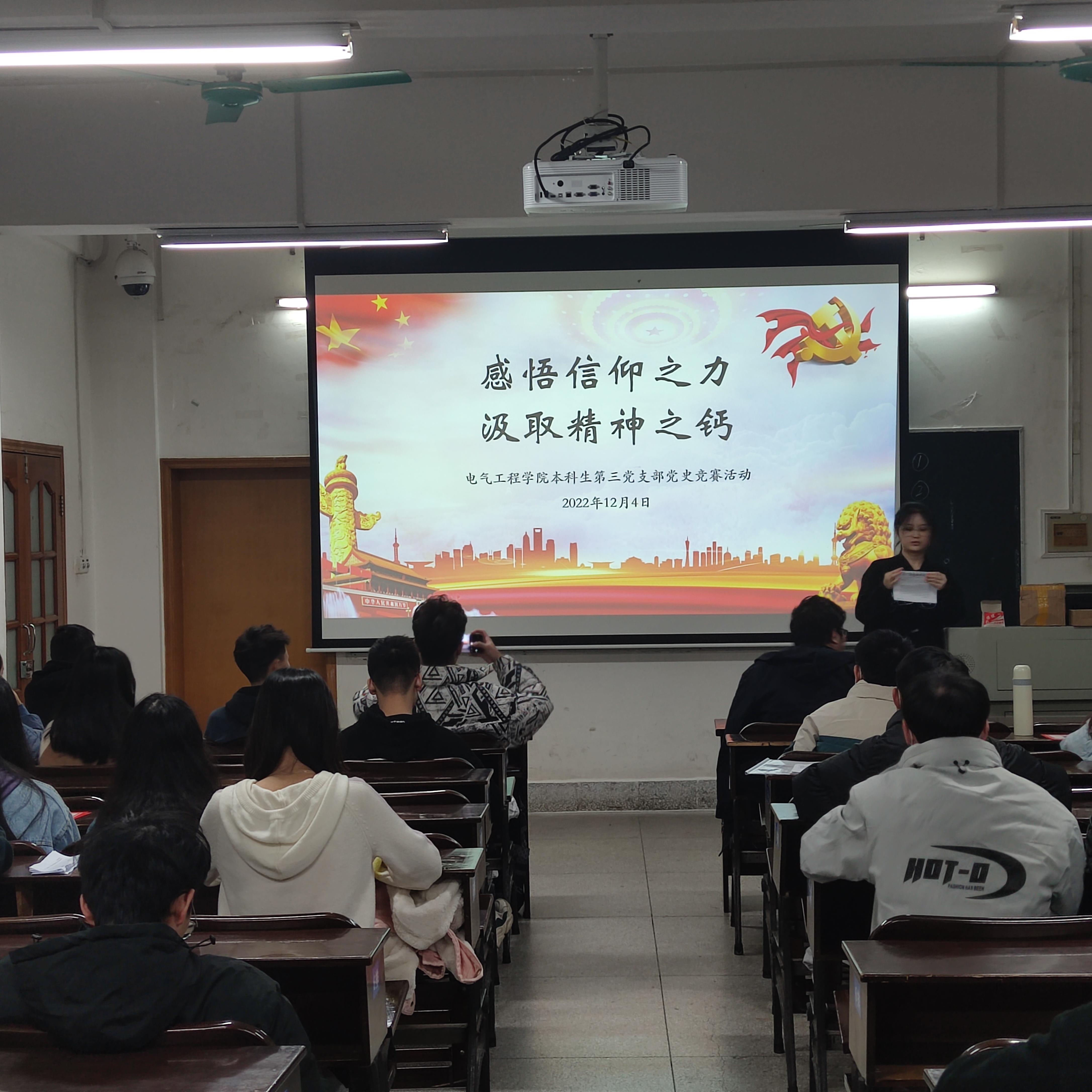 2022年12月4日,kaiyun登录中国入口登录本科生第三党支部在kaiyun登录中国入口登录304开展了“感悟信仰之力,汲取精神之钙”主题党史知识竞赛活动。本次党日活动以庆祝中国共产党第二十次全国代表大会顺利召开为契机,以习近平新时代中国特色社会主义思想和党的二十大精神为指导,重温党史,引导支部成员们热爱党、热爱祖国,宣传弘扬先辈革命精神,恪守初心、砥砺前行。