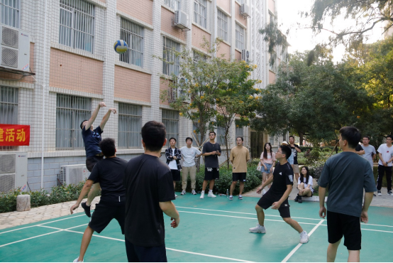 本次比赛电气研二支部和土木研十支部各派出三支队伍出战,比赛采用积分制的形式,前六场循环赛后由胜场最多的队伍进行最后的决赛。赛场上,运动员团结协作,配合默契,迅猛的发球、巧妙的拦网、精彩的扣杀,迎来一个又一个比赛高潮。球员奋力拼搏,观众热情加油,比赛扣人心弦,精彩场面随处可见。