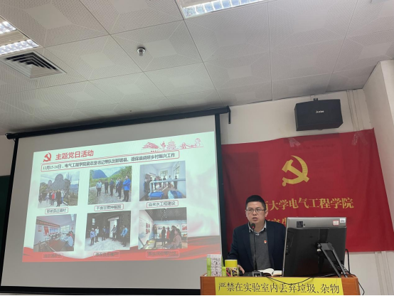 支部书记徐俊华同志结合前期深入百色那坡、德保等贫困县进行乡村实地调研的情况,重点总结了电气专业的研究生如何利用自身专业特长,解决大石山区自动化供水、山村屋顶光伏高性能并网等技术问题,为乡村振兴服务。