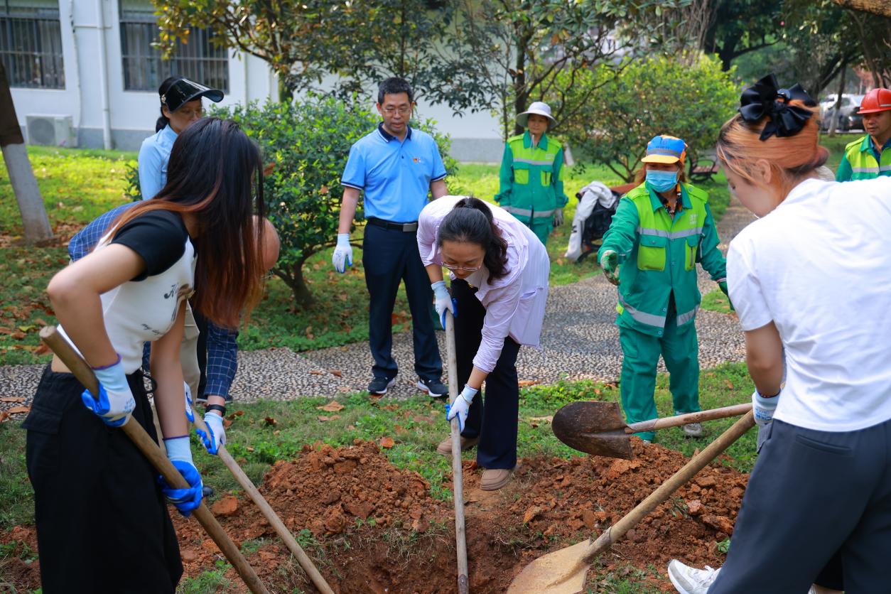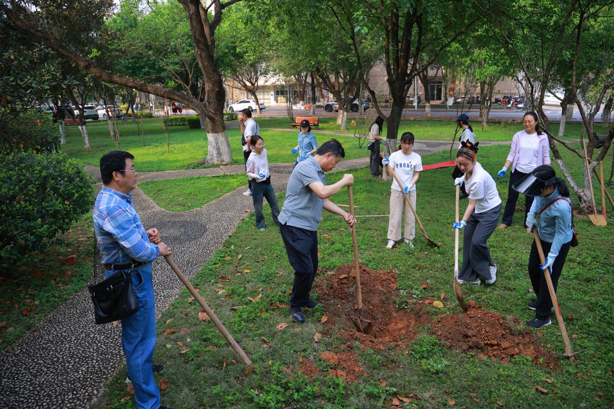 经过大家共同努力,树木扎根在沃土里,迎风挺立,“党建‘红’”和“生态‘绿’”交相辉映,成为春日校园里一道亮丽的风景线。